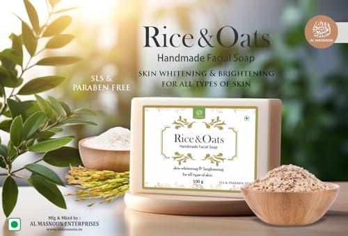AL MASNOON Rice & Oats Handmade Facial Soap 100g(Pack of 2) Skin Whitening & Brightening SLS & Paraben Free