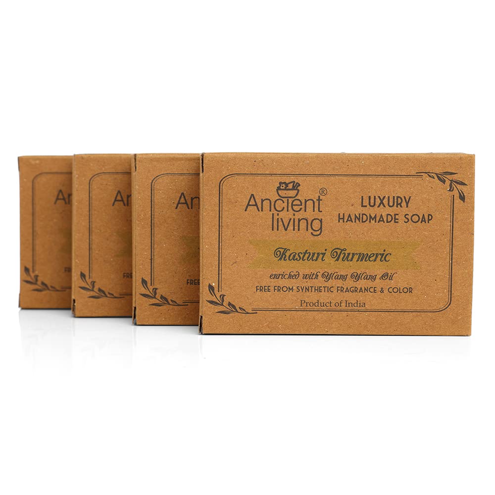 Ancient Living Kasturi Turmeric Luxury Handmade soap is enriched with the goodness of wild Kasturi turmeric pure ylang ylang essential oil along with other skin nourishing oils.