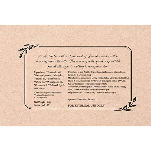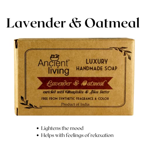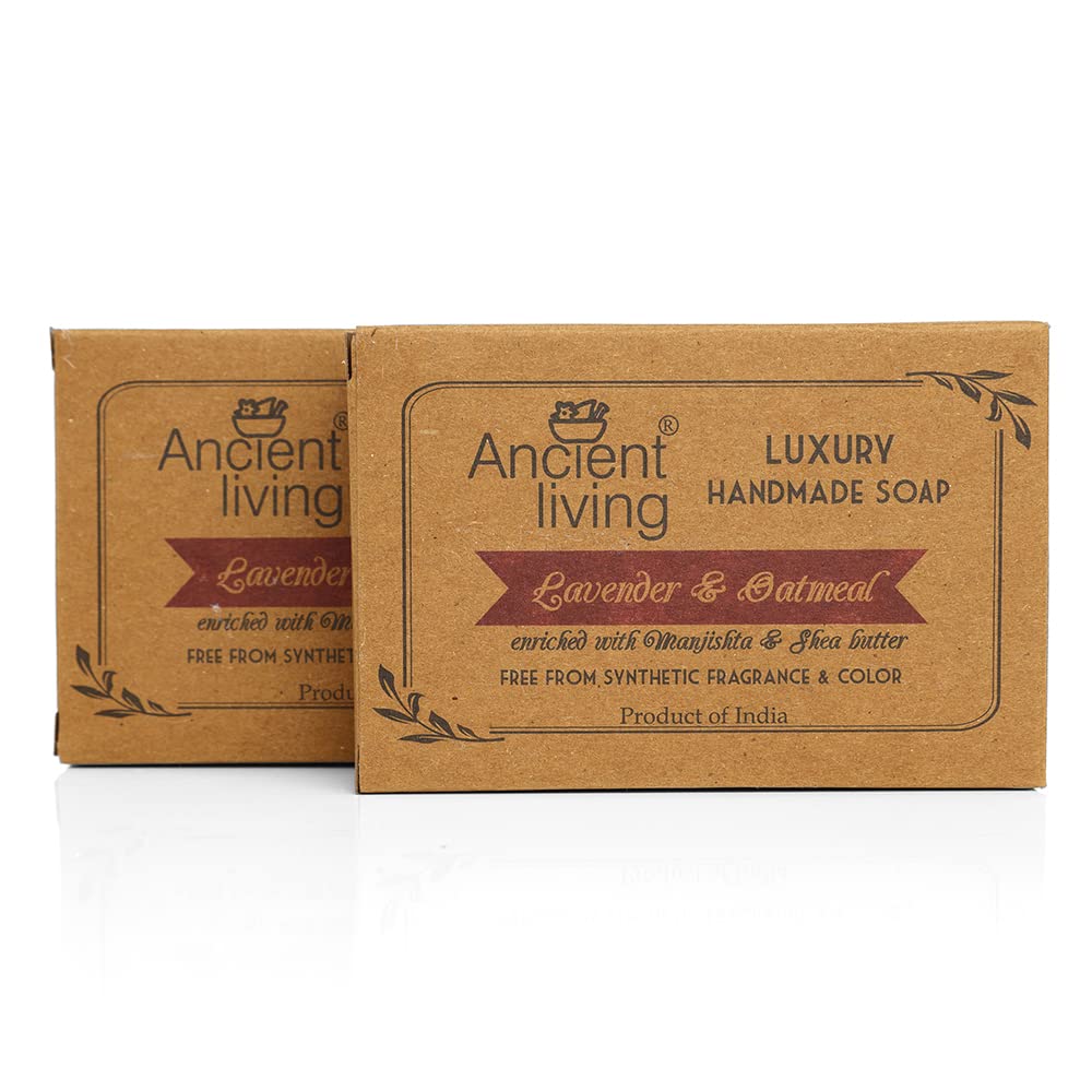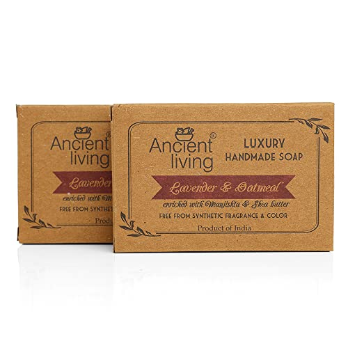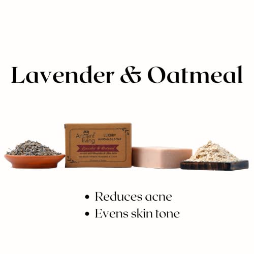HomeBeautyBodyBath & ShowerSoapsAncient Living Lavender & Oatmeal Luxury Handmade Soap -100 gm - (Set of 2) Organic Anti-Ageing Hydrating and Moisturizing Bathing Bar Best for Skin Inflammation