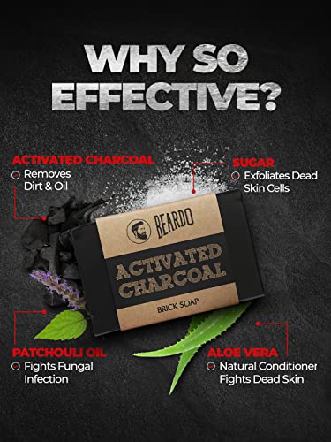 Beardo Activated Charcoal Brick Soap - 125gm | Body Cleansing with the Goodness of Activated Charcoal | Brick Soap for Men | Pollution Damage Control | Deep Cleansing