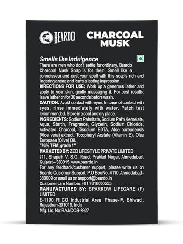 • Beardo Charcoal Musk Soap is a one stop solution for men who are always on the go. The soap is carfully handcrafted to deep cleanse your skin by unclogging the pores removing dirt and excess oil and render a healthy glow.
