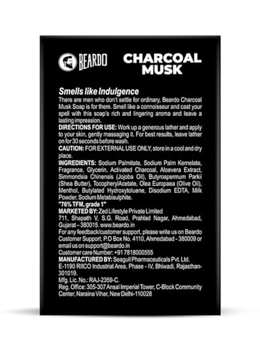 • Beardo Charcoal Musk Soap is a one stop solution for men who are always on the go. The soap is carfully handcrafted to deep cleanse your skin by unclogging the pores removing dirt and excess oil and render a healthy glow.