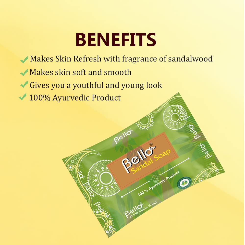 Bello Sandal Soap - Handcrafted Glycerin Based Soap - 75gm Each Pack of 3