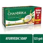 Experience the authentic goodness of Ayurveda with the classic Chandrika Ayurvedic Soap handmade with natural ingredients that do more than just cleansing for your skin. With its 80 years of wisdom Chandrika has made this soap bar using ayurvedic herbs soaked in double* the amount of pure Coconut oil. With the goodness of Ayurveda best-kept skin secrets this bathing bar soap helps ensure total skin care. It has an abundance of coconut oil 2x the amount in leading soaps with natural ingredients. Coconut skincare capabilities are endless! It soothes the skin reducing outbreaks and irritation. Rich in antioxidants and Vitamin E coconut oil helps slow skin ageing making your skin soft supple and radiant. It also has Patchouli Oil your skin's best friend for its antifungal antiseptic and anti-inflammatory properties. Finally the sweet-scented sandalwood extract helps cool the body tone the skin and enliven dehydrated skin with its moisturising properties. The result Clear Blemish-free skin naturally! Try the healthy and happy skin secret today!