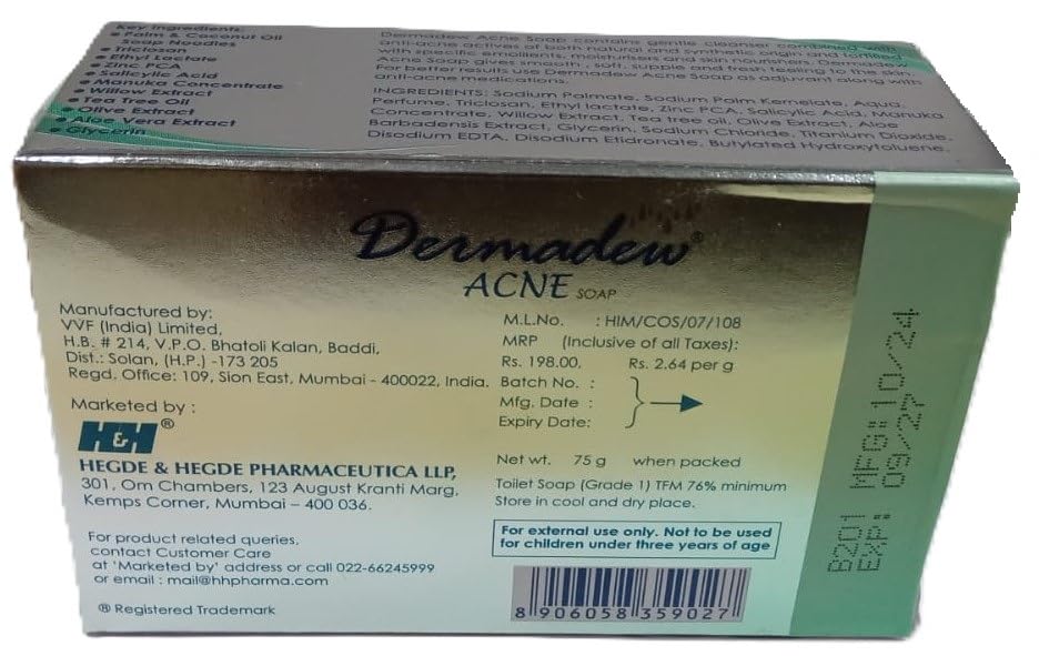 moisturizers and skin nourishers. Dermadew Acne Soap gives smooth soft
