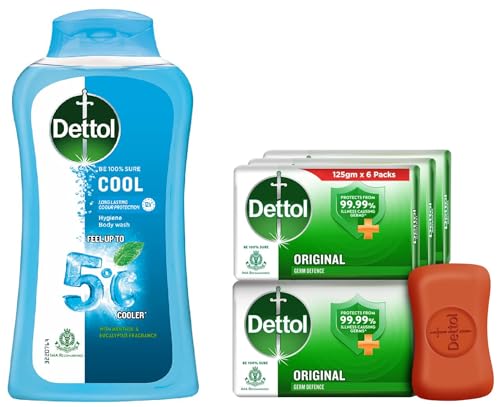 HomeBeautyBodyBath & ShowerSoapsDettol Body Wash and Shower Gel for Women and Men & Dettol Original Germ Protection Bathing Soap Bar (Pack of 6-125g each)