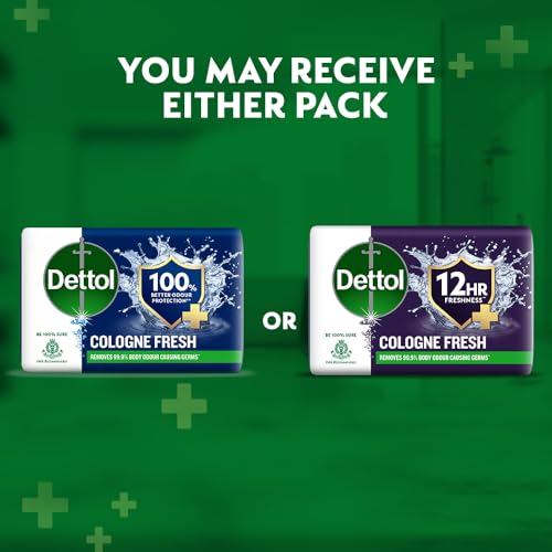Be 100% sure to protect your skin from 100 illness-causing germs and bacteria with the Dettol Cologne Fresh Bathing Soap bar. It gives long lasting freshness and energized feeling. It protects from 99.9% body odour causing germs. The trusted germ-protection formula of Dettol soap acts like a barrier between your skin and a wide range of unseen germs. Safety Information: Keep out of reach of children unless under adult supervision. Avoid direct contact with eyes. In case of contact with eyes rinse immediately with plenty of water. If persistent irritation occurs get medical attention.