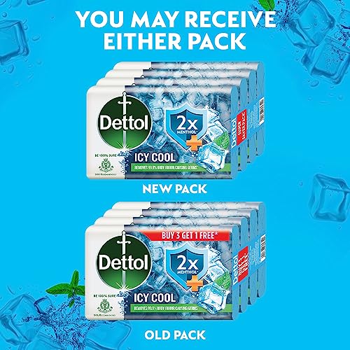 Dettol Icy Cool Bathing Soap Bar With 2x Menthol (300gm), 75gm - Pack of 4