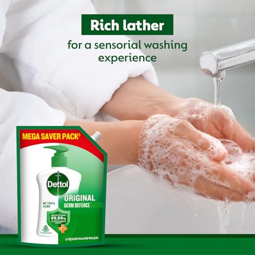 Dettol Original Germ Protection Handwash Liquid Soap Pump 200mlBe sure to protect your skin from 100 illness-causing germs and bacteria. Use Dettol's Original Germ Protection Handwash Liquid Soap pH balanced formula every day and keep your hands hygienically clean and refreshed. This hand wash provides soft and rich lather leaving behind clean hands and mild pine fragrance. The trusted germ-protection modus operandi acts like a barrier between your hands and a wide range of unseen germs. The soap-free formula with glycerin makes sure to keep your skin moisturised while the plant derived cleansers help ensure thorough cleaning. Dettol handwash also contains more than 85% naturally derived ingredients with no TCC & Triclosan giving another healthy reason for hand washing whenever in need. Wash hands properly with Dettol and help keep your family healthy! Safety Information: Keep out of reach of children unless under adult supervision. Avoid direct contact with eyes. For external use. In case of contact with eyes rinse immediately with plenty of water. If persistent irritation occurs seek medical attention.Dettol Liquid Handwash Refill - Original Germ Protection Hand Wash 1500 ml (Price offer) | Antibacterial Formula | 10x Better Germ ProtectionBe sure to protect your skin from 100 illness-causing germs and bacteria. Use Dettol's Original Germ Protection Handwash Liquid Soap pH balanced formula every day and keep your hands hygienically clean and refreshed. This hand wash provides soft and rich lather leaving behind clean hands and mild pine fragrance. The trusted germ-protection modus operandi acts like a barrier between your hands and a wide range of unseen germs. The soap-free formula with glycerin makes sure to keep your skin moisturised while the plant derived cleansers help ensure thorough cleaning. Dettol handwash also contains more than 85% naturally derived ingredients with no TCC & Triclosan giving another healthy reason for hand washing whenever in need. Wash hands properly with Dettol and help keep your family healthy! Safety Information: Keep out of reach of children unless under adult supervision. Avoid direct contact with eyes. For external use. In case of contact with eyes rinse immediately with plenty of water. If persistent irritation occurs seek medical attention.