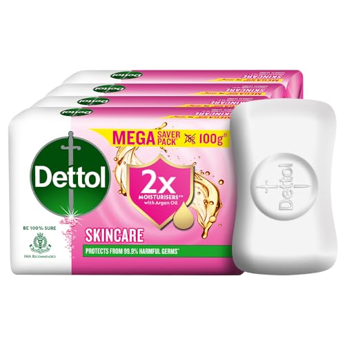 Dettol Skincare Moisturizing Beauty Bathing Soap Bar with Argan Oil (400gm) | Softer Skin, 100gm, Pack of 4