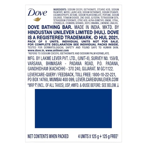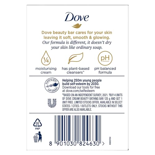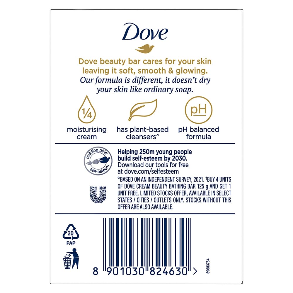 Dove Cream Beauty Bathing Soap Bar 125g (4+1 Free Combo) | With Moisturising Cream for Softer Skin & Body, Nourishes Dry Skin more than Ordinary Soap (Pack of 2)
