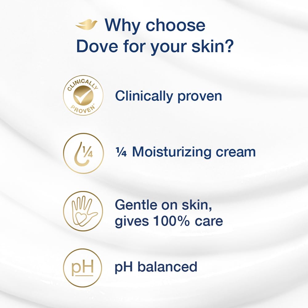 • pH-BALANCThe pH-balanced formula of Dove soaps ensures that they are gentle on the skin while also providing effective cleansing and moisturization. This is particularly important for people with dry or sensitive skin as harsh soap can lead to dryness and