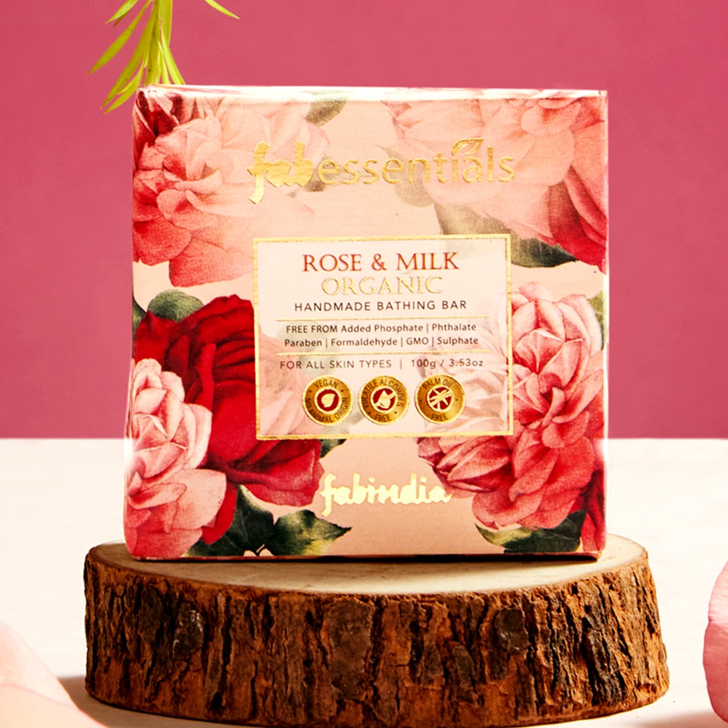 Fabessentials Rose & Milk Organic Handmade Bathing Bar cleanses the skin with a soft lather. The combination of rose and goats milk creates a luxurious floral and silky experience. Goats milk aids in calming sensitive skin and the rose especially helps to lock in skinâs moisture.