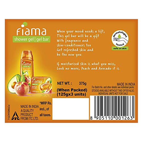 Fiama Gel Bar Peach And Avocado, 375g (125g - Pack of 3), with Skin Conditioners For Moisturized Skin, Soap for Women & Men, For All Skin Types