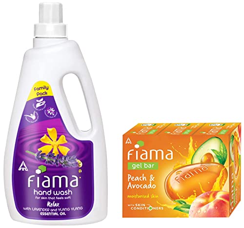 Fiama Relax Moisturizing hand wash Lavender and Ylang Ylang 1000ml refill packFiama liquid handwash contains fragrance that is proven to make you feel relaxed. The gel formulation contains skin conditioners that make your hands soft and has natural germ protection to keep your hands safe. Available in 3 variants - happy relax and fresh.Fiama Gel Bar Peach And Avocado For Moisturized Skin With Skin Conditioners 125g Soap (Pack Of 3)Wash away the troubles of your day with the foamy fresh and fun Fiama Gel Bar. And while you enjoy your Fiama bath let its skin-conditioners work their magic to give you soft moisturised skin. This Peach and Avocado gel bar gives you the daily refreshment you need to take on the day with its fruity fragrance. It is filled with goodness of natural ingredients to give you soft moisturised skin.  So get ready to wash away a hard day one bath at a time.