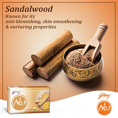 Favored by over 380 million consumers Godrej No.1 offers you 'Nature's way to beauty with carefully chosen natural ingredients to make your skin naturally beautiful. It is Grade 1 quality soap and the highest-selling soap of its kind in the country. Godrej No.1 Sandal and Turmeric soap is enriched with the goodness of Sandalwood to heal the skin with its anti- blemishing and nurturing propertiesas well as Turmeric known for its anti-septic and healing properties. It preserves the young nature of your skin giving you a perfect complexion. It protects your skin and gives you a youthful and young look.