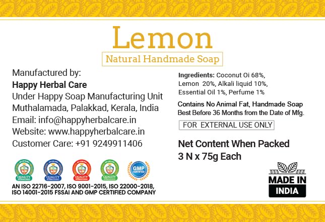 Happy Herbal Care Lemon Handmade Soap 75g (Pack 3)