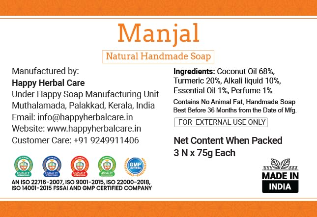 HAPPY HERBAL CARE MANJAL SOAP 75 GM (PACK OF 3)