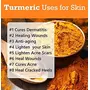 • TREATS SKIN TANNING : The exposed parts to the sun should be applied Kasturi turmeric which prevents from getting tanned. One can get rid of tanning within few days of application of Kasturi turmeric powder. Our Soap TUMERIC SOAP Made from 100% Coconut Oi
