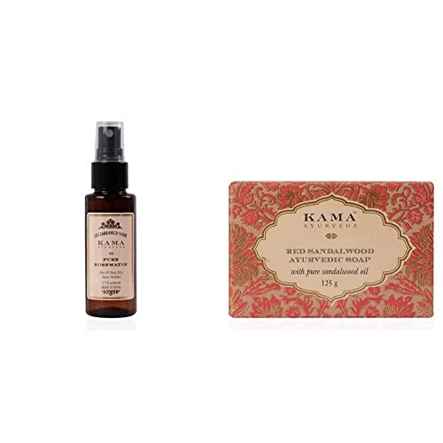 Kama Ayurveda Pure Rose, 50ml and Red Sandalwood Ayurvedic Soap with Pure Sandalwood Oil, 125g