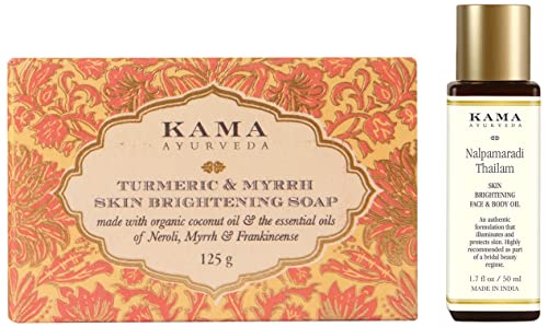 Kama Ayurveda Turmeric and Myrrh Skin Brightening Soap, 125g & Kama Ayurveda Nalpamaradi Thailam Skin Brightening Treatment- 50 ml