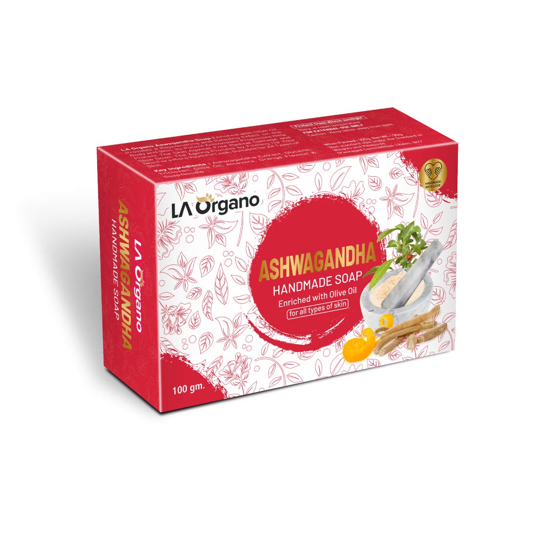 LA Organo Ashwgandha Handmade Natural Bath Soap Orange Flavour Enriched with Olive Oil - 100gm