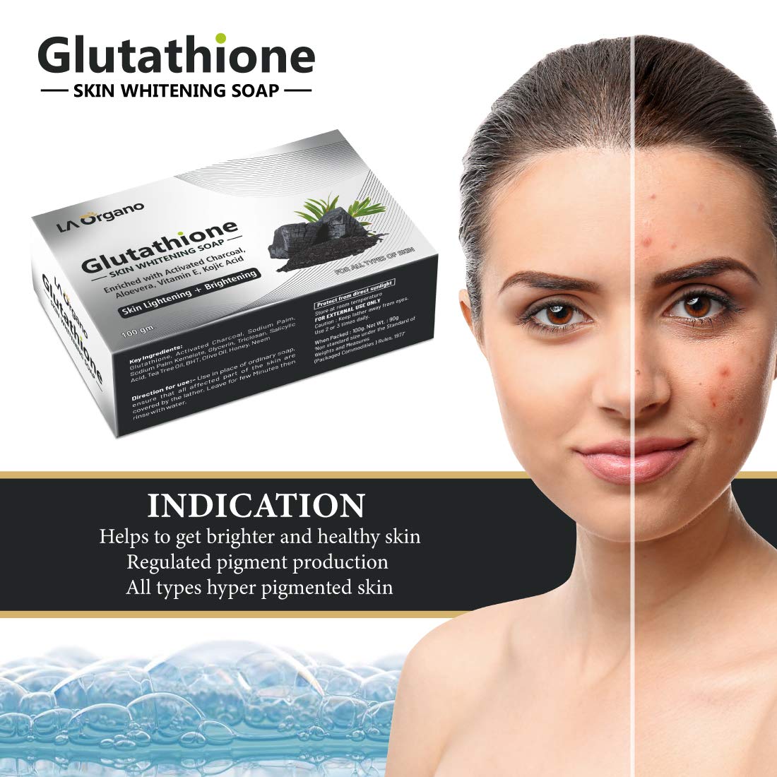 LA Organo Glutathione Activated Charcoal Skin Whitening Soap For All Skin Type (100gm) Pack of 1