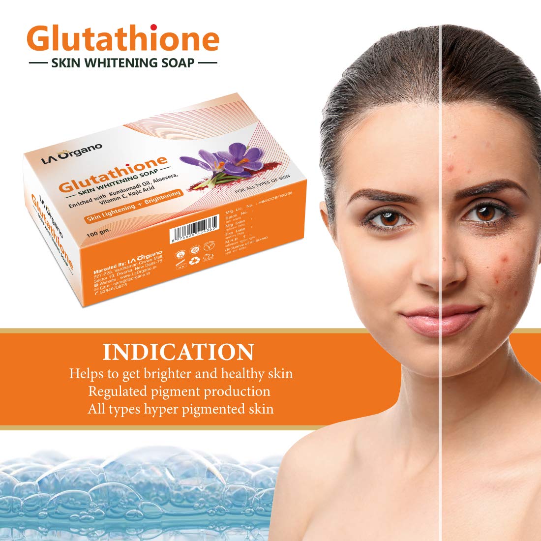 LA Organo Glutathione Kumkumadi Skin Lightening & Brightening Soap For All Skin Type (100gm) Pack of 2
