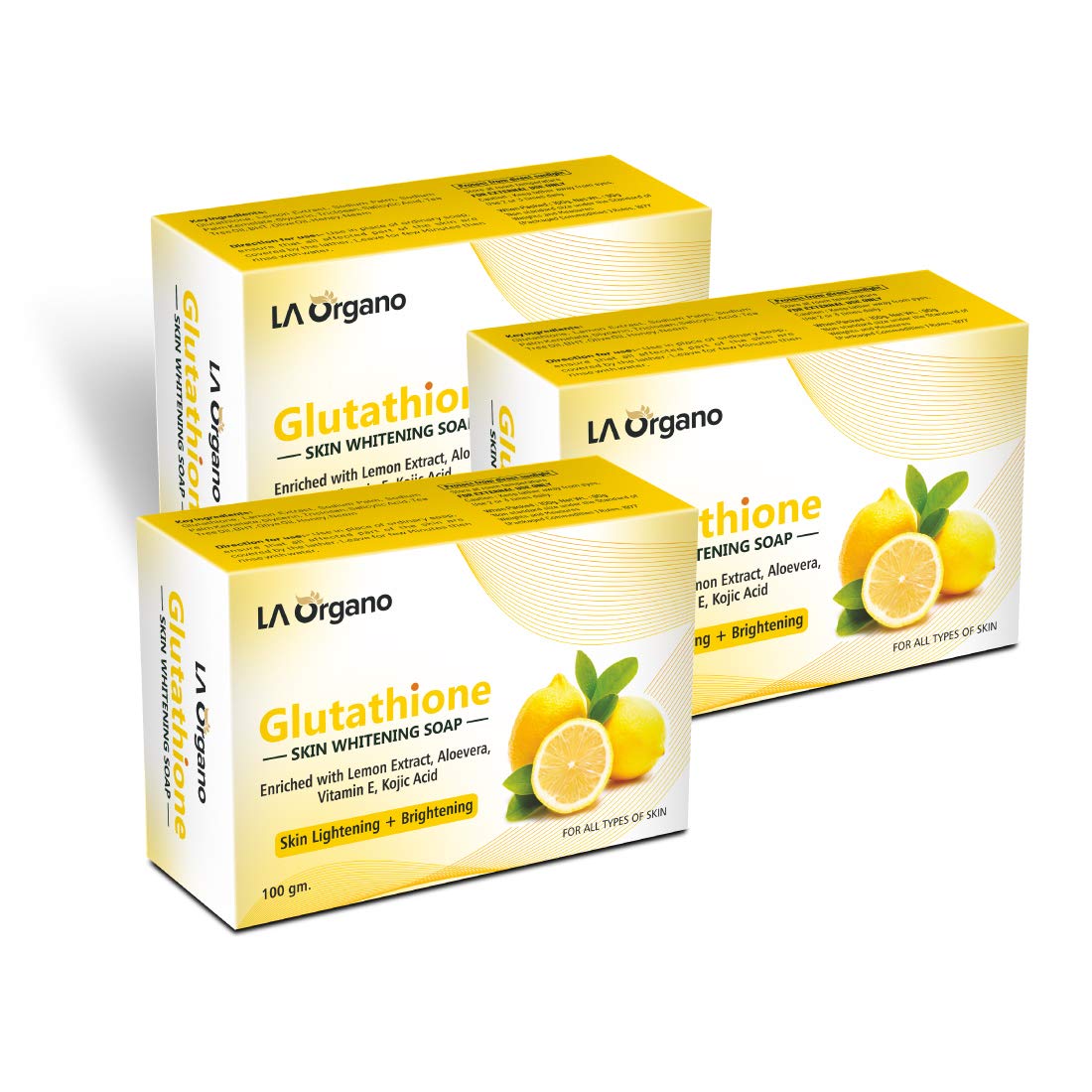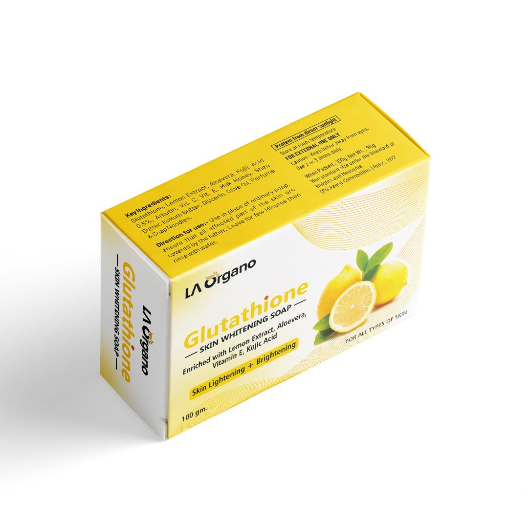HomeBeautyBodyBath & ShowerSoapsLA Organo Glutathione Soap For Skin Whitening Lightening and Brightening with Lemon Extracts for All Skin Types (Pack of 3)