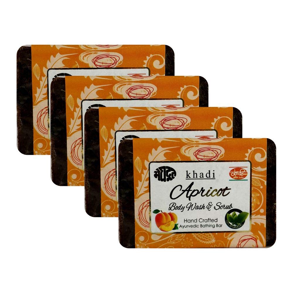 Meghdoot Apricot Body Wash Soap khadi handmade ayurvedic bathing bar with natural apricot extract herbal body cleanser for skin exfoliation and deep moisturization 125gm (Pack of 4)
