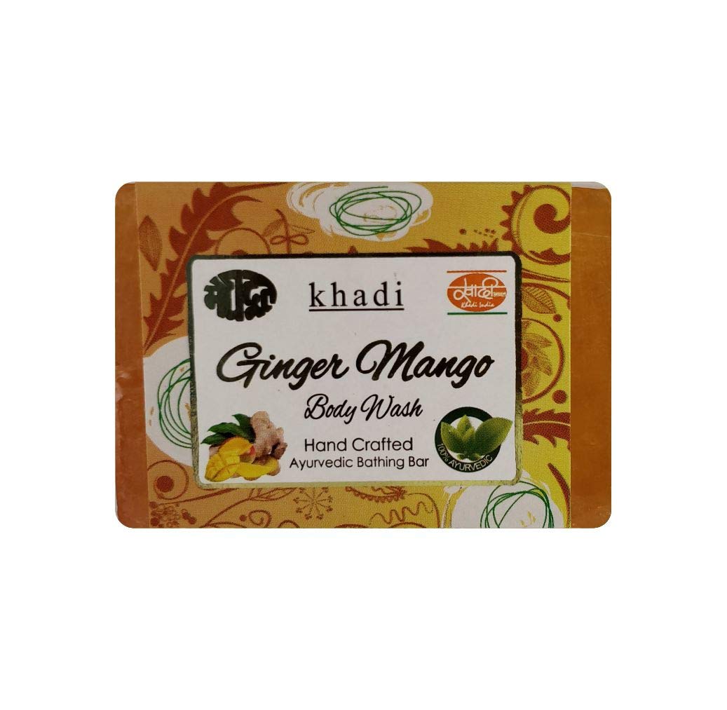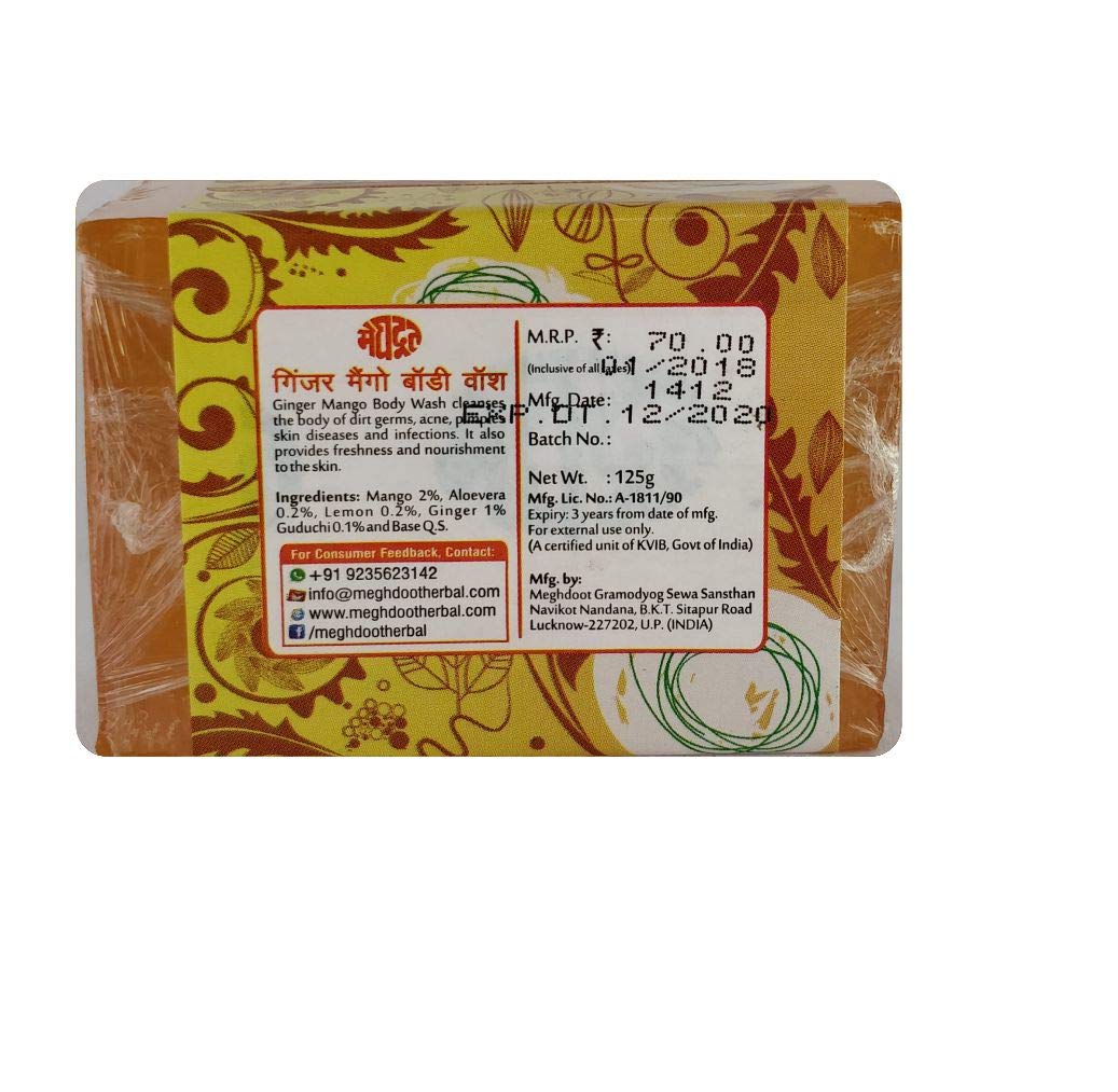 Meghdoot Ginger Mango Body Wash Soap khadi handmade ayurvedic bathing bar with ginger and mango extracts natural skin moisturizing herbal soap for soft glowing skin 125gm (Pack of 4)