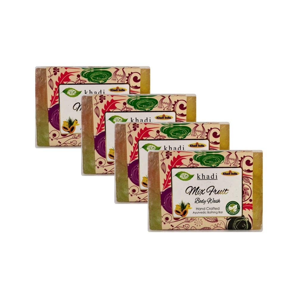Meghdoot Mix Fruit Body Wash Soap khadi handmade ayurvedic soap natural skin moisturizing herbal bathing bar for soft smooth glowing skin with fruit extracts 125gm (Pack of 4)