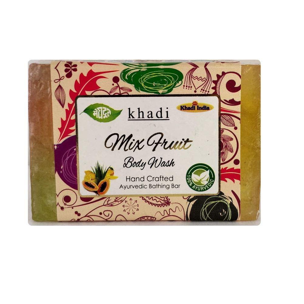 HomeBeautyBodyBath & ShowerSoapsMeghdoot Mix Fruit Body Wash Soap khadi handmade ayurvedic soap natural skin moisturizing herbal bathing bar for soft smooth glowing skin with fruit extracts 125gm (Pack of 4)