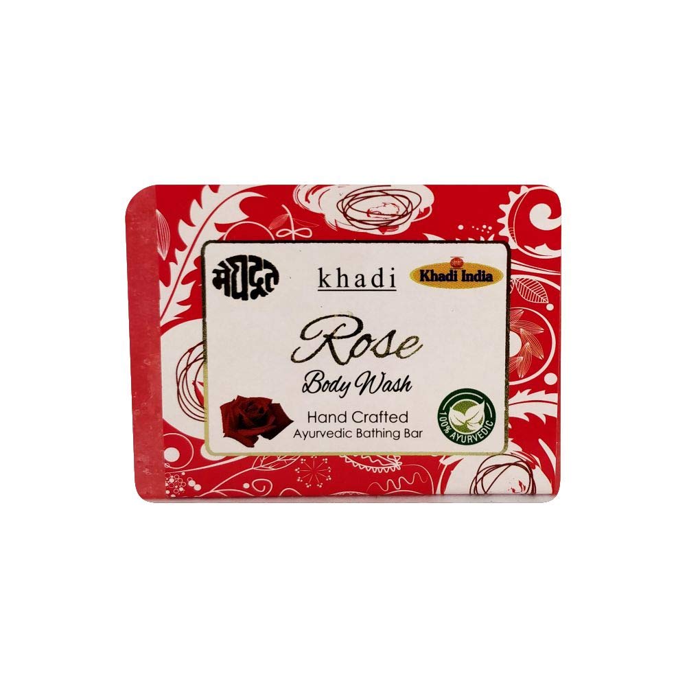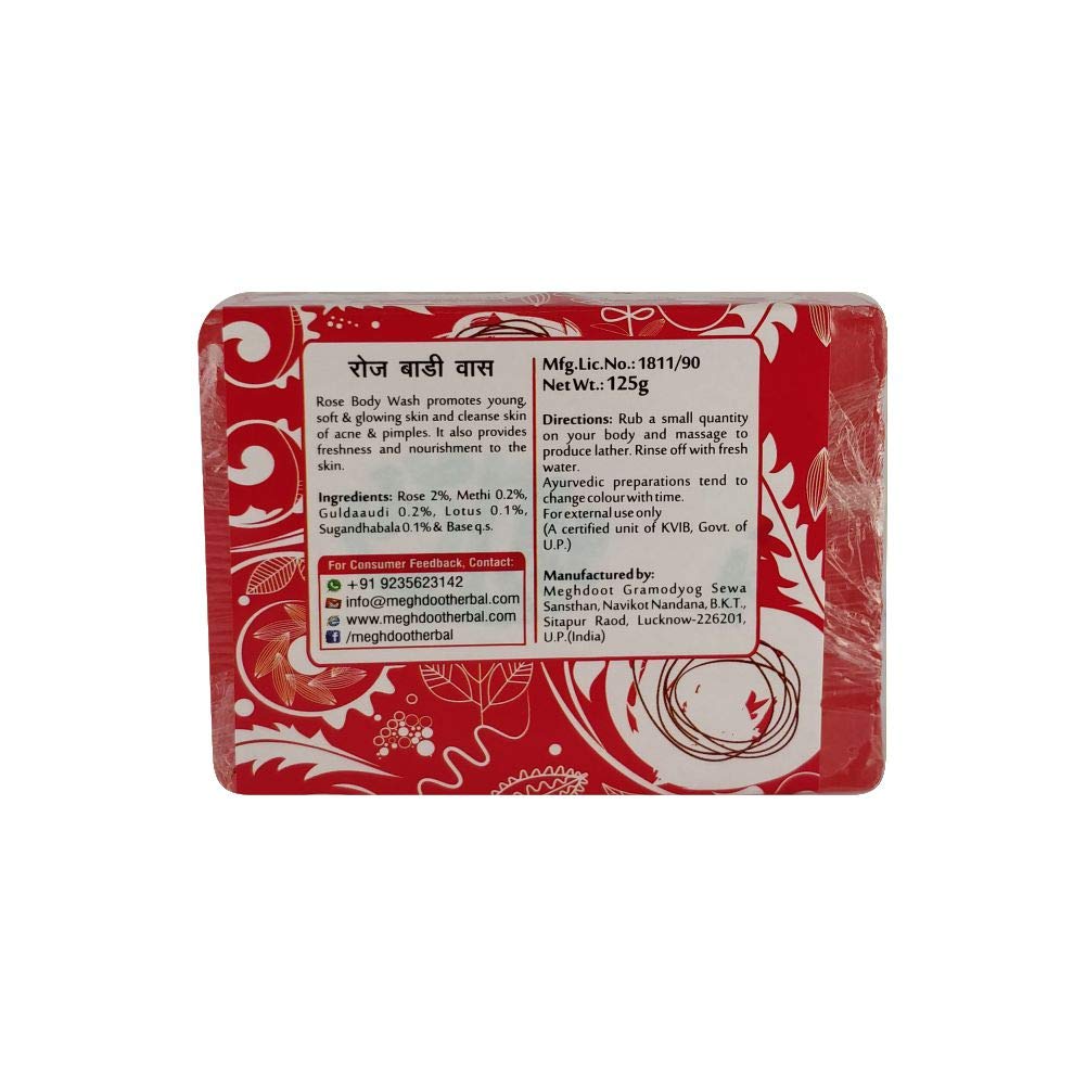 Meghdoot Rose Body Wash Natural Herbal Cleanser Khadi Ayurvedic Soap for Glowing Skin Gentle Skin Hydration with Rose Extracts for All Skin Types 125gm (Pack of 4)