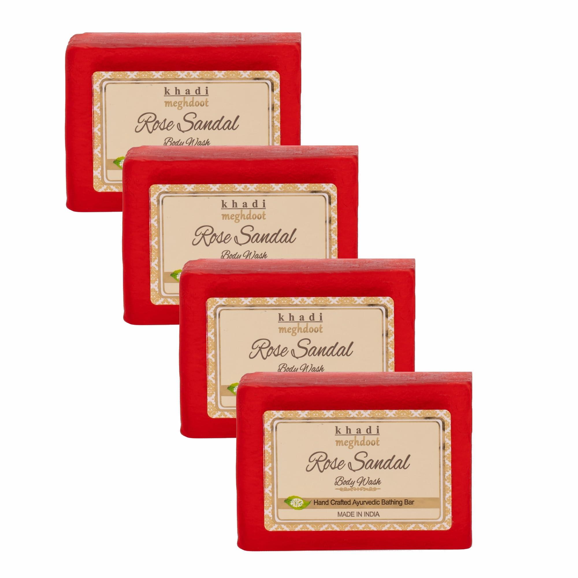 Meghdoot Rose Sandal Body Wash Soap – Handmade Ayurvedic Soap with Rose and Sandalwood Extracts for Natural Skin Moisturizing Soft & Smooth Skin for All Skin Types 125gm (Pack of 4)