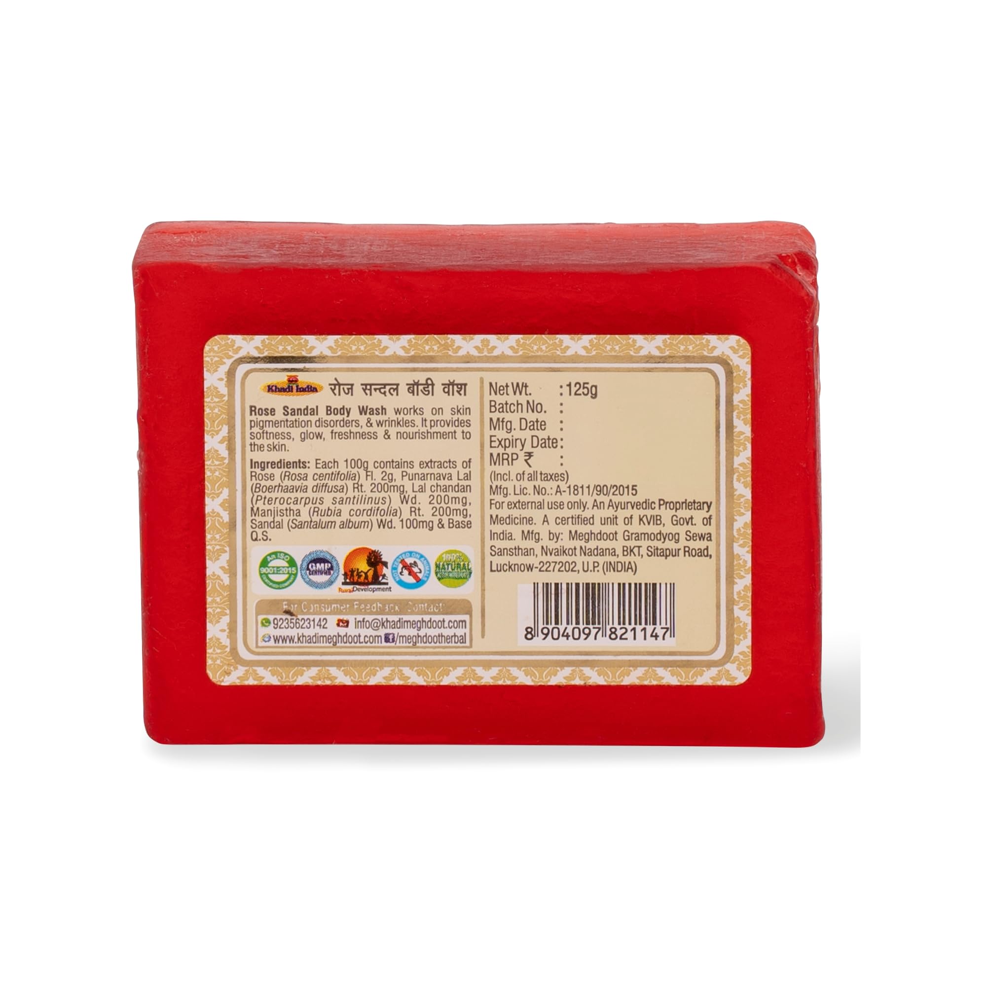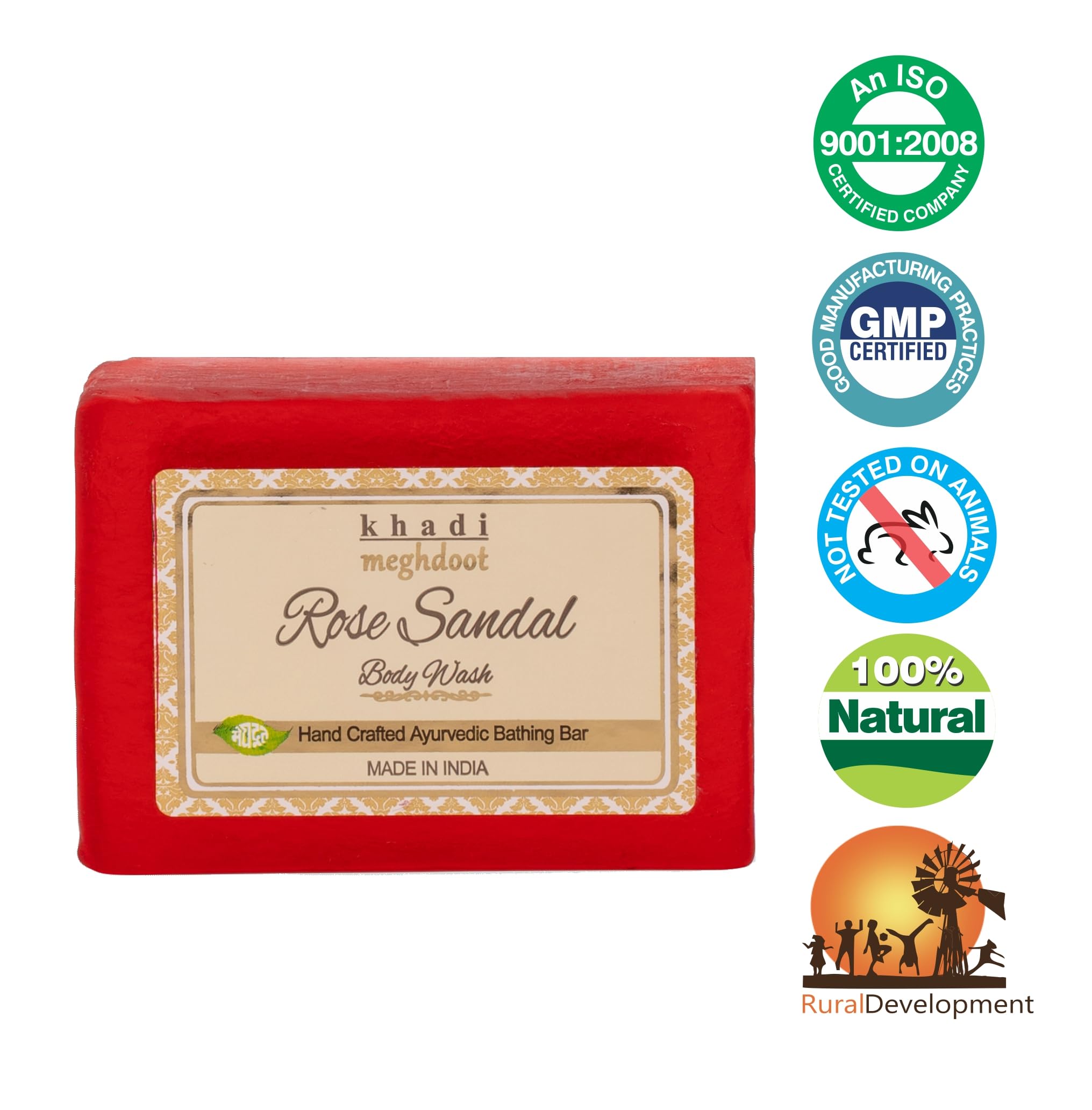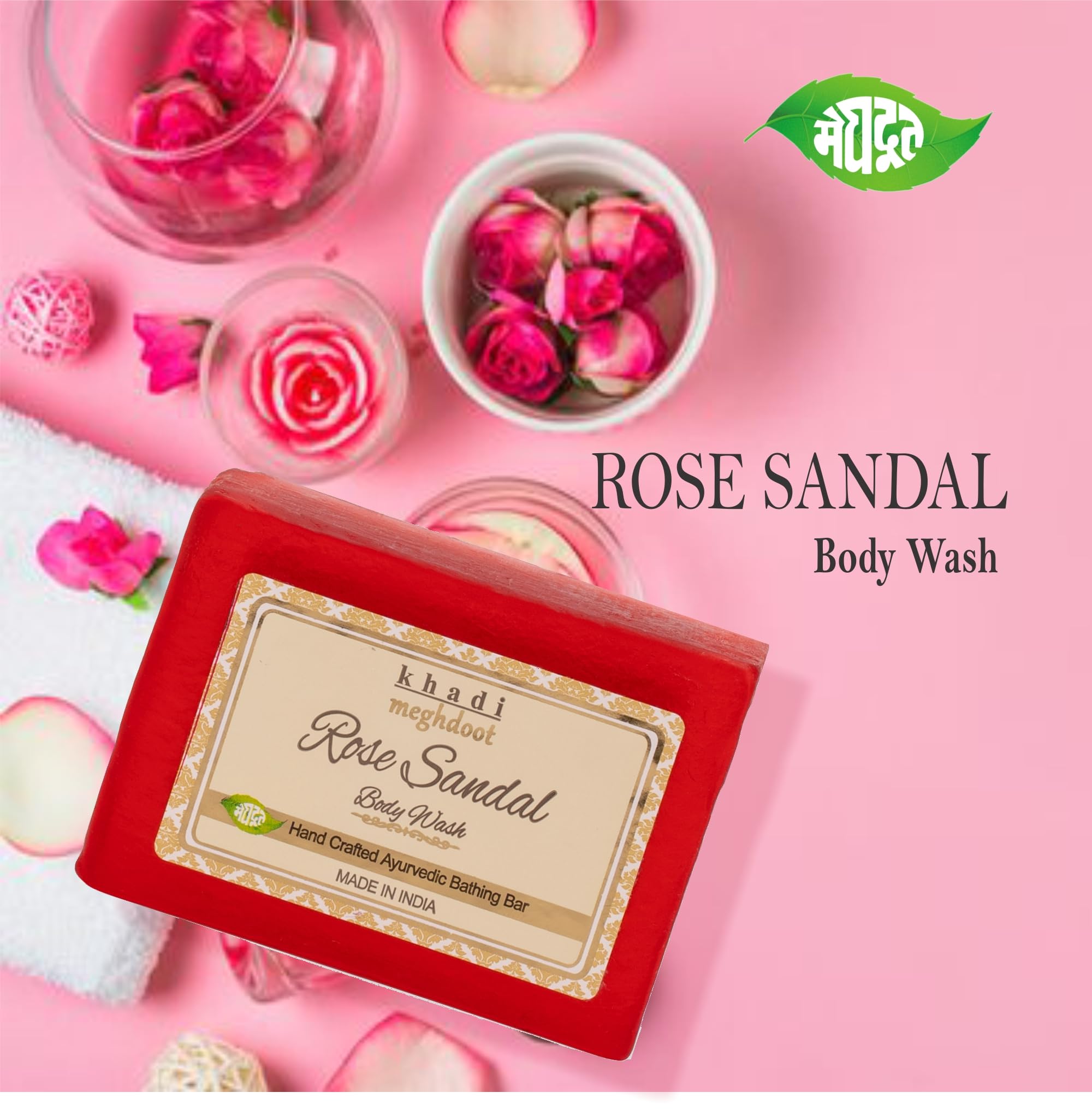 HomeBeautyBodyBath & ShowerSoapsMeghdoot Rose Sandal Body Wash Soap Handmade Ayurvedic Soap with Rose and Sandalwood Extracts for Natural Skin Moisturizing Soft & Smooth Skin for All Skin Types 125gm (Pack of 4)