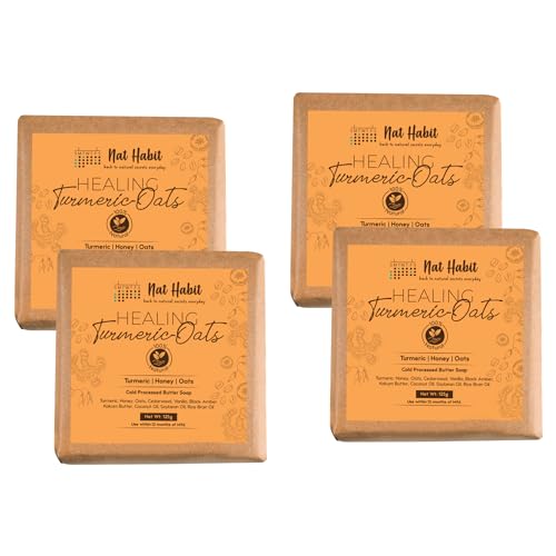 Nat Habit Healing Turmeric-Oats Bath Soap With Ayurvedic Cold Processed For Scar Reduction, Gentle Exfoliation, Tan Removal & Cleansing (125g x 4)