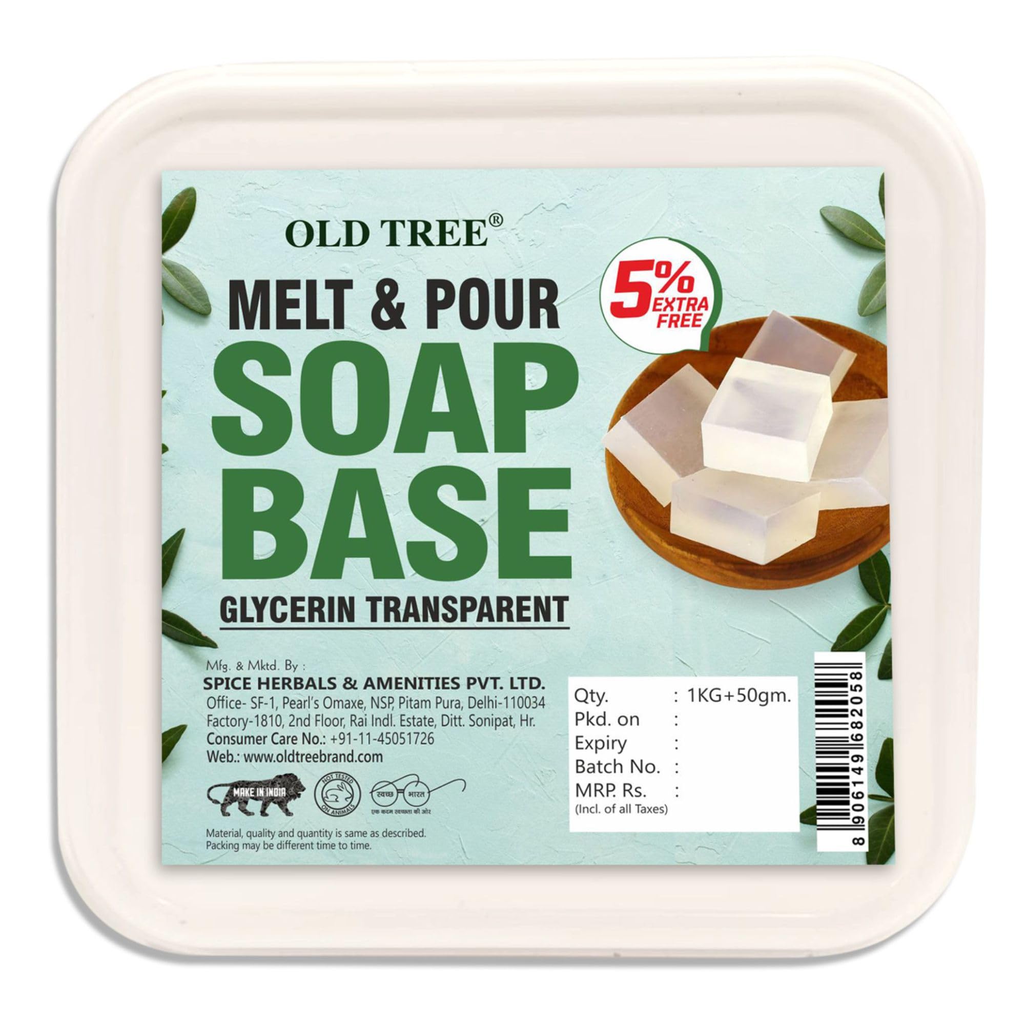 HomeBeautyBodyBath & ShowerSoapsOld Tree Glycerine Transparent Soap Base (1 Kg + 50g Extra) for Soap Making | Paraben Free & Non Fragrant | Melts & Pour Handmade Soap | DIY Soap Making at Home