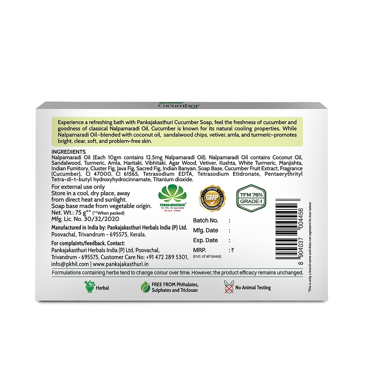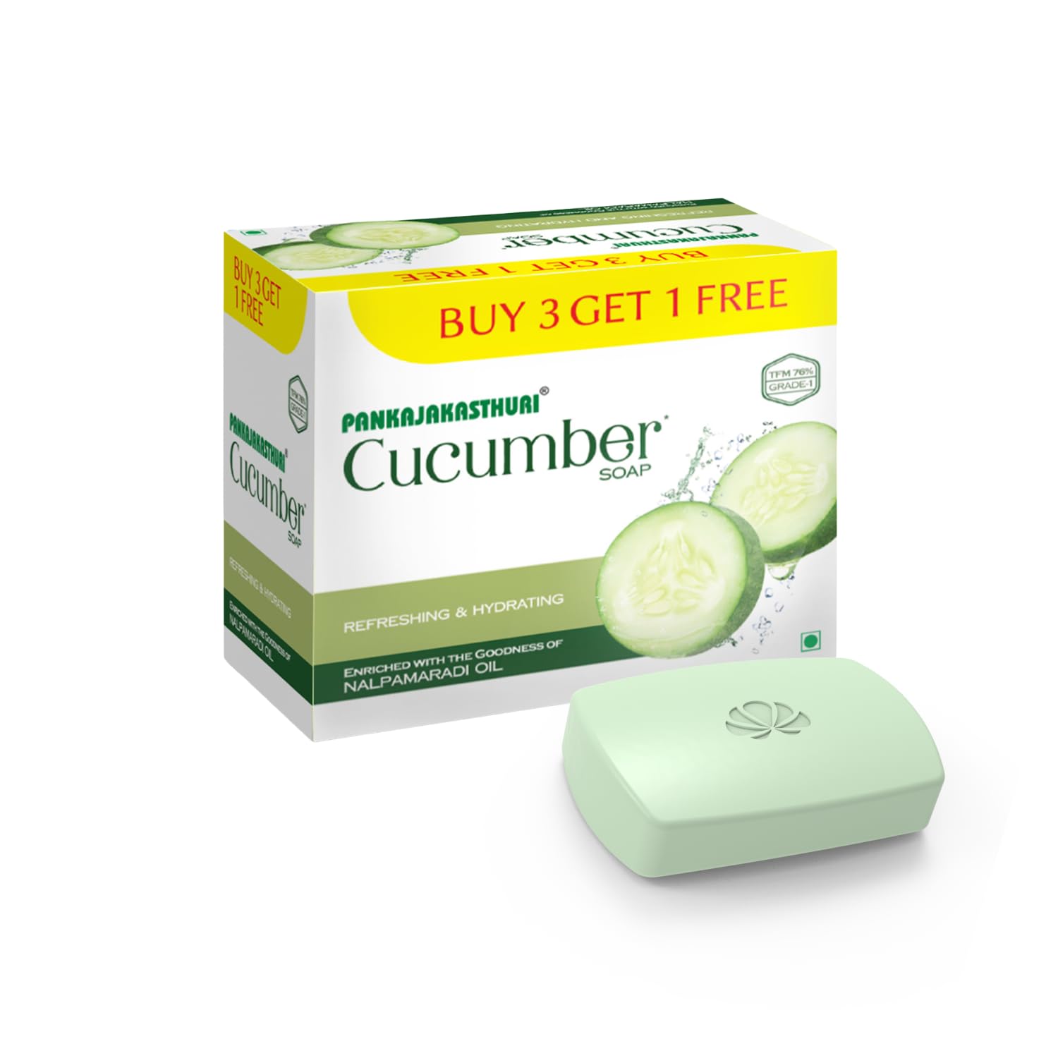 Pankajakasthuri Cucumber Soap with Nalpamaradi Oil 75g Herbal Extract Pack of 9 + 3