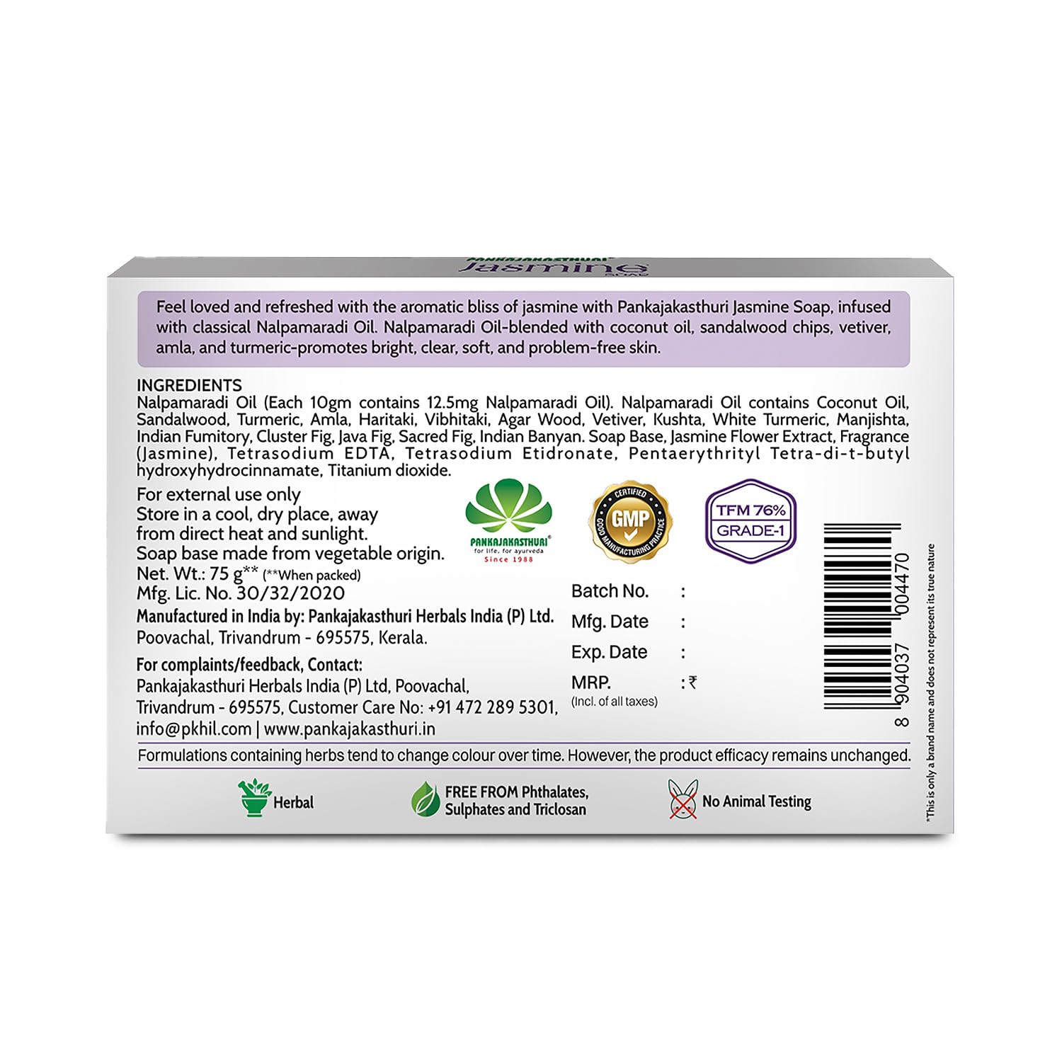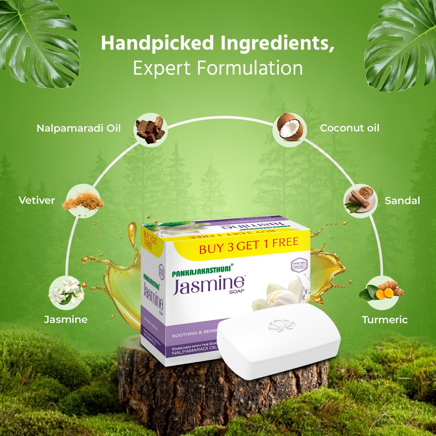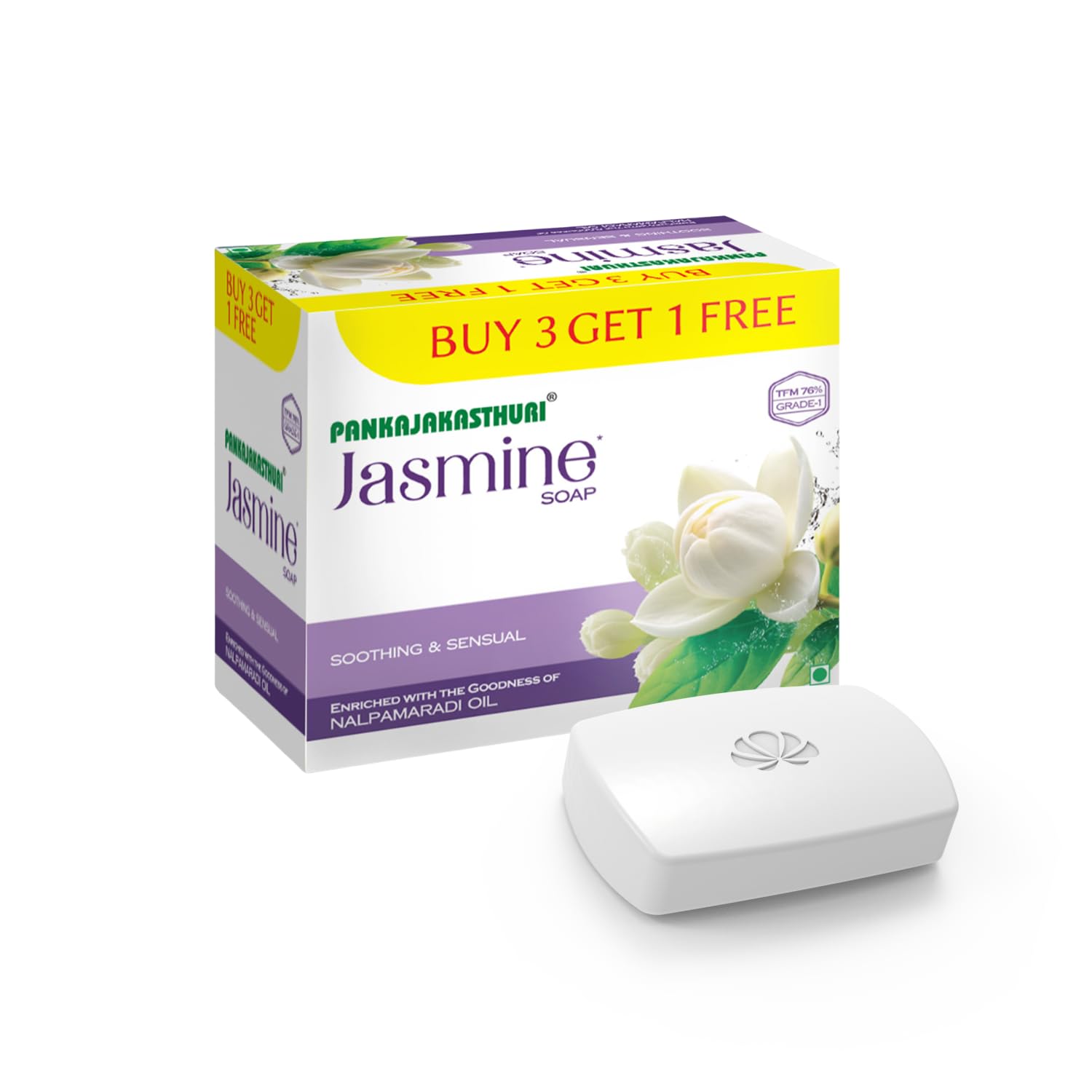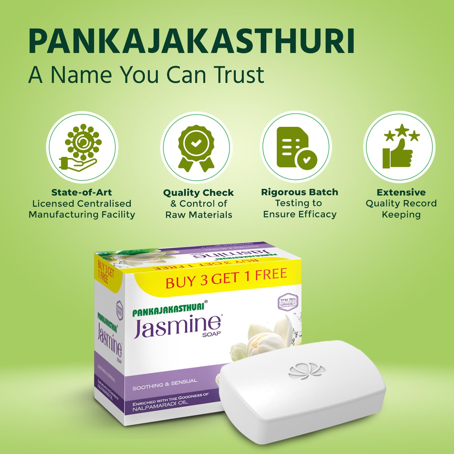 Pankajakasthuri Jasmine Soap with Nalpamaradi Oil 75g Herbal Extracts - Buy 9 Get 3 Free