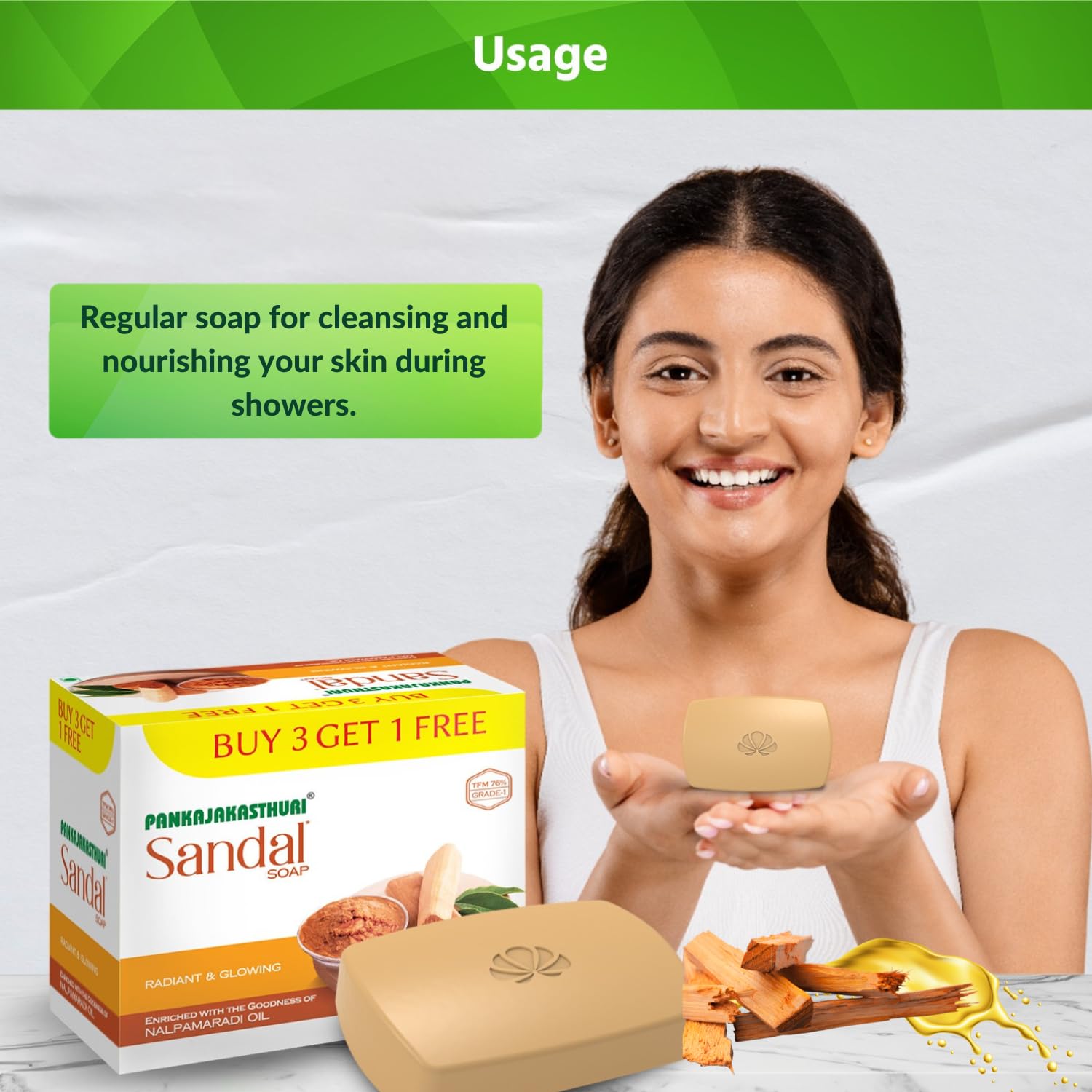 Pankajakasthuri Sandal Soap Herbal Extract with Nalpamaradi Oil 75g- Buy 9 Get 3 Free