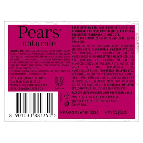 Don't you think products that have the goodness of natural ingredients in them are more suitable for you skin? Pears understands this and therefore brings to you the beautiful range of Pears Naturalé that has an exciting mix of natural ingredients. With the Goodness of 100% Natural Ingredients the New Pears Naturalé range of beauty bathing bars and body washes give you naturally glowing skin. The Pears Naturalé bathing bars also have pure glycerin that helps preserve the natural moisture of your skin making it soft and smooth. Pears Naturalé Pomegranate Brightening bathing bar has the goodness of 100% Natural Pomegranate along with rose extract. This beauty bathing bar gently cleanses your skin for a visibly brighter glowing skin everytime you shower. Do you know that Pomegranate is packed with anti-oxidants and is known to help brighten your skin and Rose Extract with essential oils is known to soothe skin. This gentle formula has 0% Parabens and is mild and gentle on skin. Just rub this Pears bar between your hands and massage the hydrating lather over your face and skin before rinsing away. Pat dry. For best results use twice a day morning and evening. Pears Naturalé Bathing Bar Soap is also environmental friendly and comes in 100% recyclable cartons. Explore the entire Pears Naturalé range of Bathing Bars & Body Washes now available online and add them to your skin care regime.
