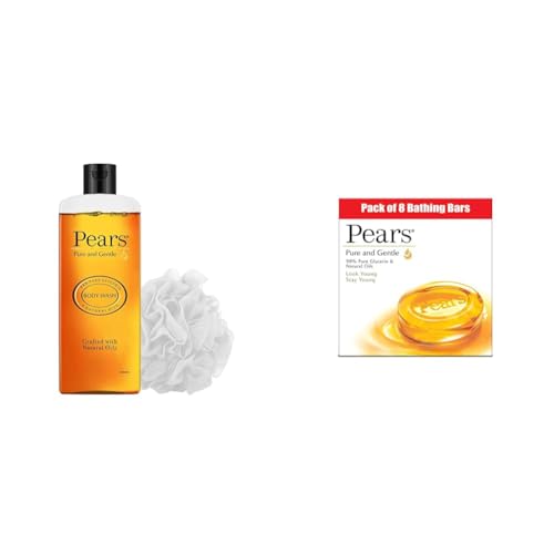 Pears Pure and Gentle Body Wash 250 ml & Pears Pure & Gentle Soap Bar (Combo Pack of 8) - With Glycerin for Soft