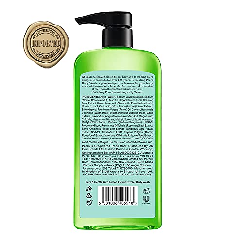 HomeBeautyBodyBath & ShowerSoapsPears Pure & Gentle Shower Gel, Body Wash with Oil Clear Formula for Removing Excess Oil with Lemon Flower Extracts, 100% Soap Free, Imported, 500 ml