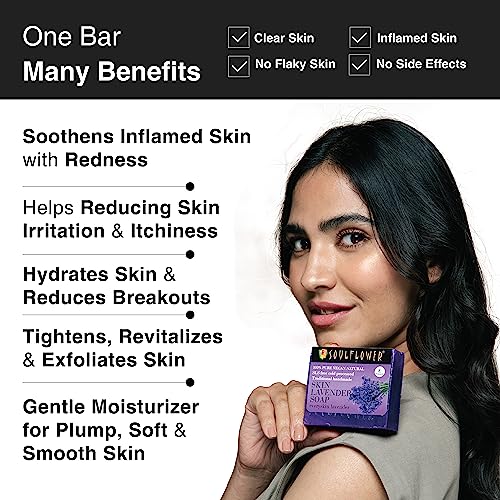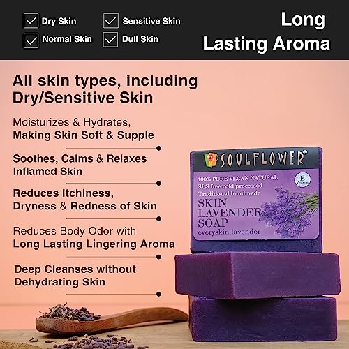 HomeBeautyBodyBath & ShowerSoapsSoulflower Lavender Soap for Bath Handmade Luxury Bathing Bar |Men & Women for All Skin Types | Mood Uplifter, Soothing & Refreshing, Everyday Moisturization| 100% Organic & Pack of 4 150g Each