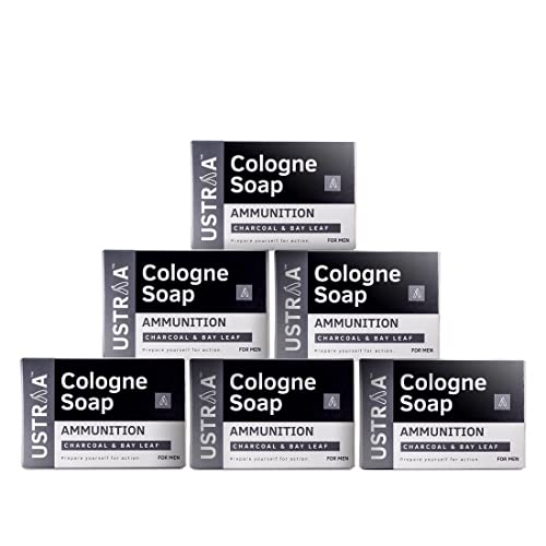 HomeBeautyBodyBath & ShowerSoapsUstraa Ammunition Cologne Soap with Charcoal & Bay Leaf, 6 x 125 gm (Pack of 6) | Clear, dirt-free skin with Activated Charcoal | Soap with Fragrance of Cologne
