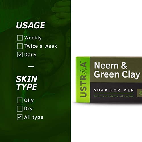 HomeBeautyBodyBath & ShowerSoapsUstraa Neem & Green Clay Soap For Men - 100 gm - Pack of 8 | Detox & Oil Control | Cleansing with Lasting Fragrance | Rich & Intense Foam | For All Skin Types