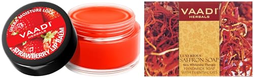 VAADI HERBALS Lip Balm Strawberry and Honey 10g & Luxurious Saffron Soap Skin Whitening Therapy 75g