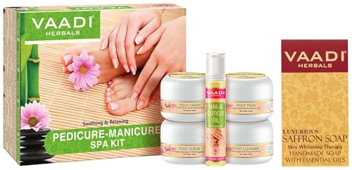 VAADI HERBALS Luxurious Saffron Soap, Skin Whitening Therapy, 75g & Soothing and Refreshing Pedicure Manicure Spa Kit, Cream and Oil Set, 135g