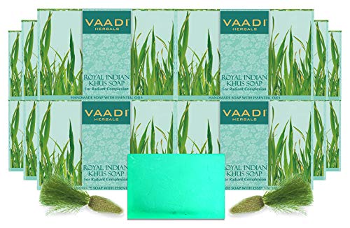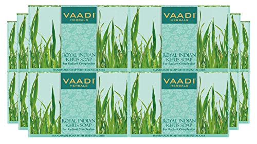 Vaadi Herbals Royal Indian Khus Soap with Olive and Soyabean Oil, 75g (Pack of 12)